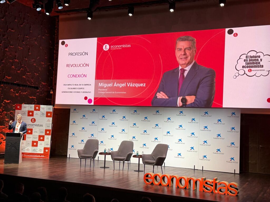 El evento dio comienzo con la intervención de Miguel Ángel Vázquez Taín, presidente del CGE, y María Jesús Gadea, presidenta de la Comisión de Jóvenes Economistas, acompañados por la periodista Cristina Rojas como conductora. Los mensajes de apertura pusieron el foco en la importancia de impulsar la innovación, la sostenibilidad y la preparación digital entre las nuevas generaciones de economistas.