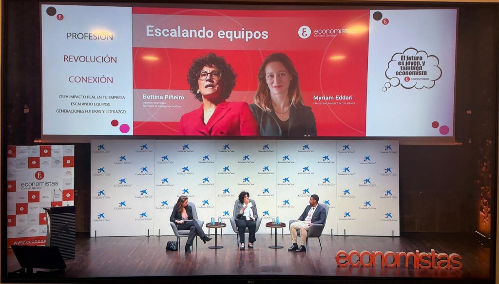 La segunda sesión, “Escalando equipos”, reunió a Bettina Piñeiro (CH Carolina Herrera) y Myriam Eddari (S&P Global Market Intelligence).